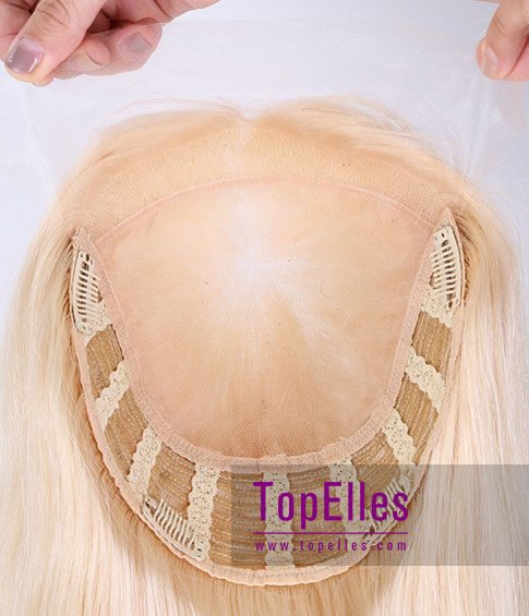 10'' Length 8x8'' Mono Top Weft Topper with Invisible Lace Front. Bleach Blonde Color