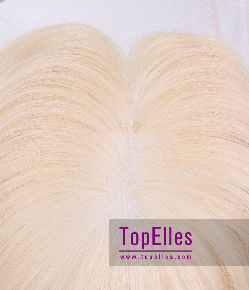 10'' Length 8x8'' Mono Top Weft Topper with Invisible Lace Front. Bleach Blonde Color